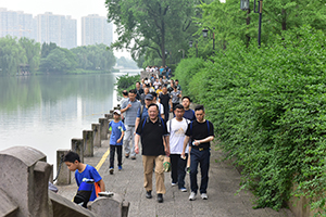 浩浩蕩蕩的正行隊伍繞公園人工湖一圈后,穿過體育公園,來到上塘河邊,沿著上塘河向南進(jìn)發(fā)。當(dāng)日天氣涼爽,河邊道路又都在植被的庇蔭之下,空氣中彌漫著滿滿的負(fù)氧離子,歡樂正行活動持續(xù)了2小時左右。